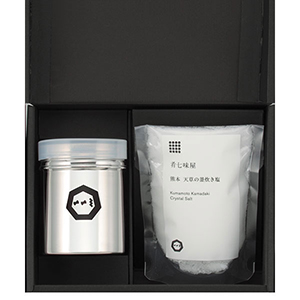 釜炊きの塩と塩缶のセットです。
