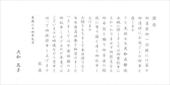 法事の引き出物に添えるお礼状。
