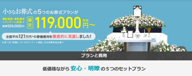 小さなお葬式は高額になりがちな葬儀費用を見直し、無駄を省いて低価格に抑えられるセットプランを提供しているのが特徴です。
