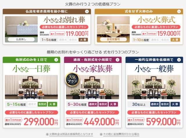 小さなお葬式の主なプラン