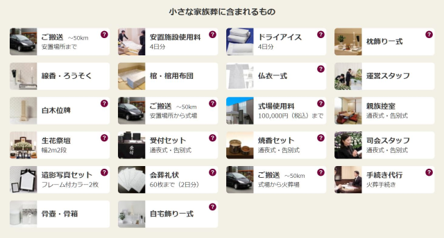 小さなお葬式の家族葬に含まれるサービス内容