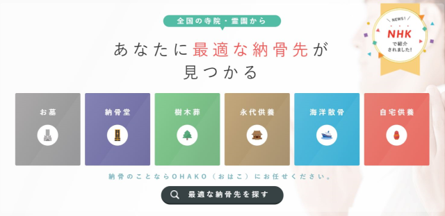 小さなお葬式では、葬儀後の永代供養や納骨方法に応じたセットプランを提供する「OHAKO(おはこ)」もご用意しています。