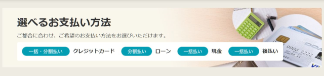 もちろん、現金での一括払いや、コンビニや郵便局でお支払いできる後払いにも対応しています。
