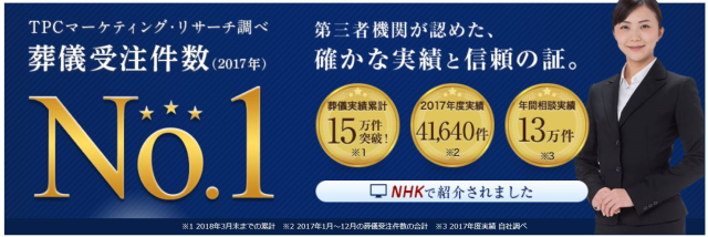 テレビ番組やCMでもよく見かけることから知名度を高め、全国葬儀受注件数ナンバーワンを獲得した実績もあります。