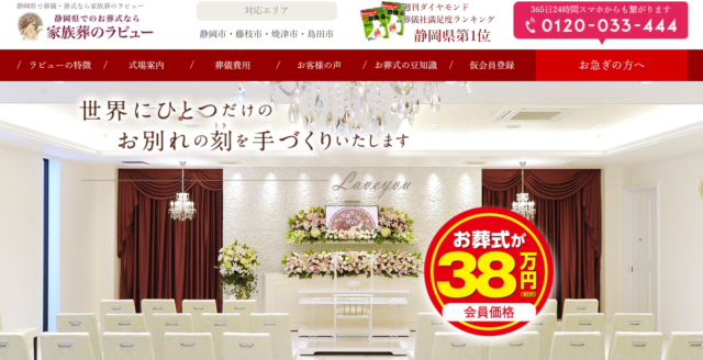 家族葬のラビューは、葬儀社満足度ランキングで静岡県第1位を獲得した実績のある葬儀社です。