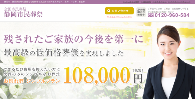 5位 静岡市民葬祭 108,000円~ 248,000円 298,000円